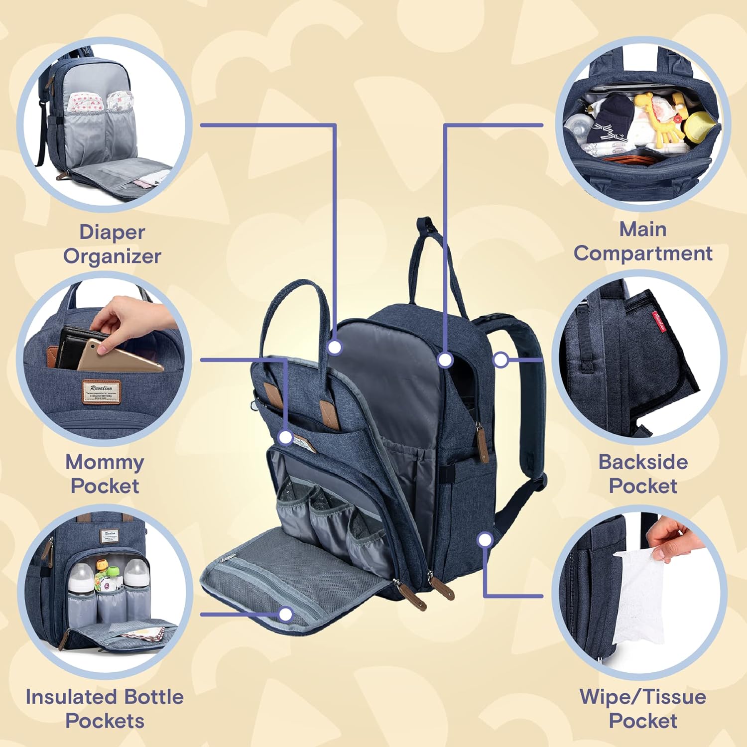 Accessible & Thoughtful Structure – The interior of our diaper bag backpack includes a padded laptop pocket, mesh organizers and a myriad of well-designed pockets. Maintain the temperature of your baby bottles/snack in the insulated pockets, easy access your keys and wallet in the parent pocket, quickly grab a diaper out of the mesh diaper organizer, and anti-theft back pocket for storing your valuables.