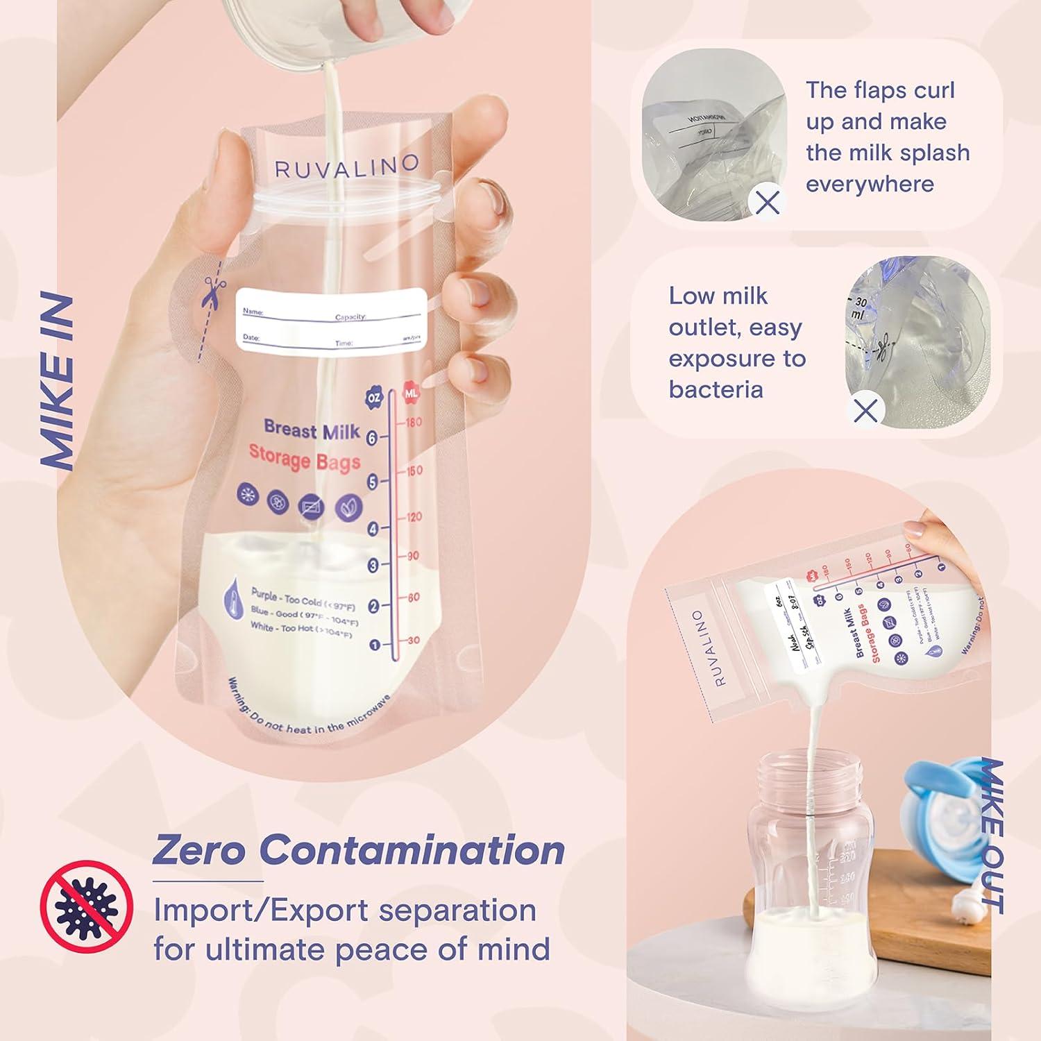Zero Contamination: Our unique milk in/out separation design allows you to pour milk directly without secondary pollution—no need to fuss with pouring through the sealing zipper at the top. Breastfeeding moms can easily pour out breast milk—just tear the perforations of the spout. And compared to the bottom-side pour design, it's easier to handle and pour with minimal contact with the milk