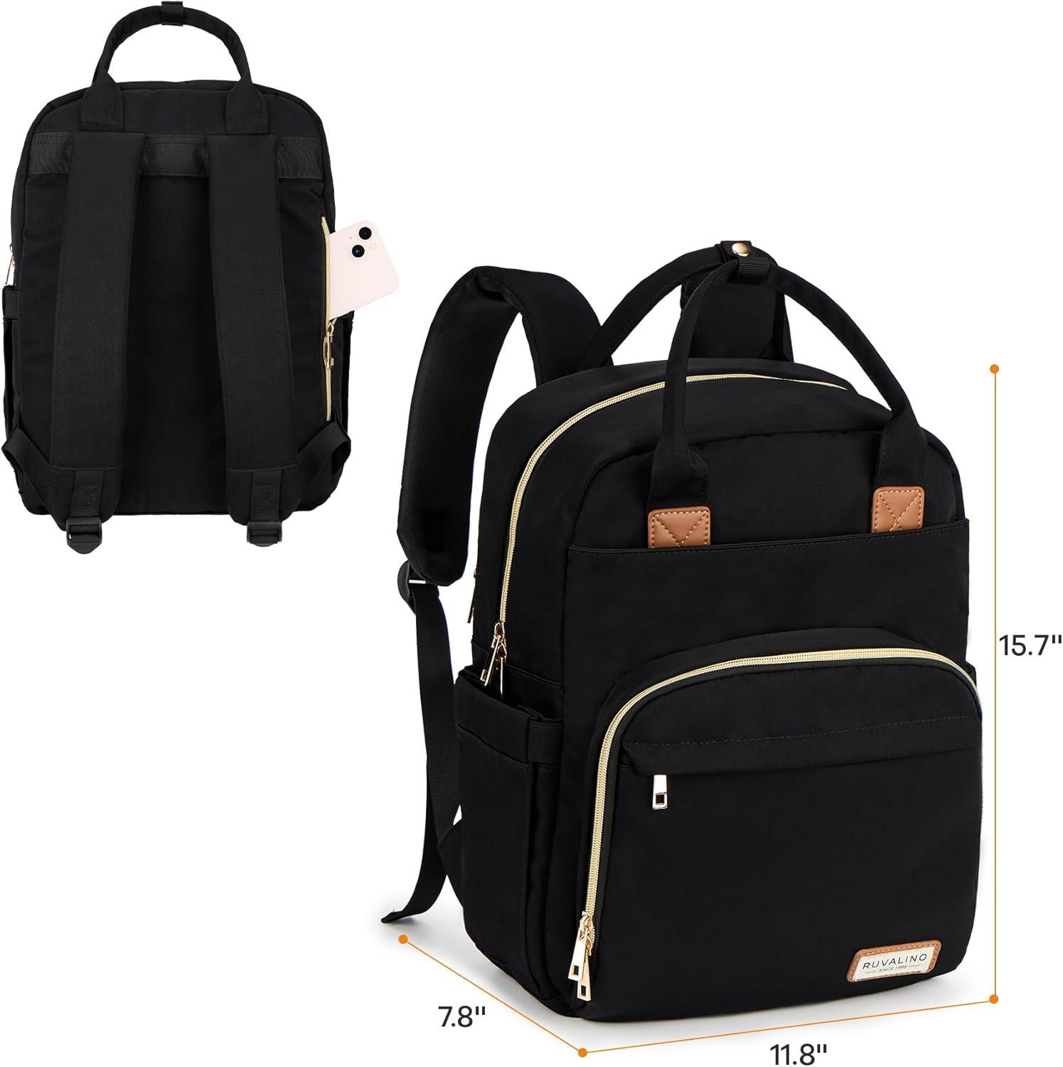 Ergonomic structure maintains balance even with 15lbs load, Ruvalino Diaper backpack weight 1.83lb with thickened S-curve straps & breathable mesh back panel reduces strain. Adjustable chest strap fits all body types, convertible to single/double shoulder carry.